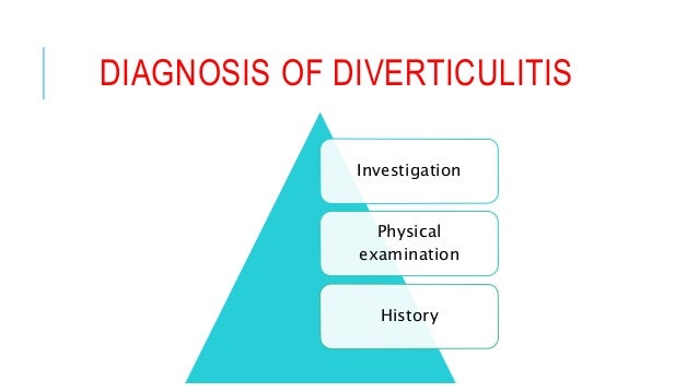 Diverticulitis is diagnosed by CT scans, which show inflammation of the colon, as well as any infected pockets of fluid near the colon. Treatment options . During an attack of diverticulitis, the first treatments are antibiotics. In mild cases, ... Doc Viewer